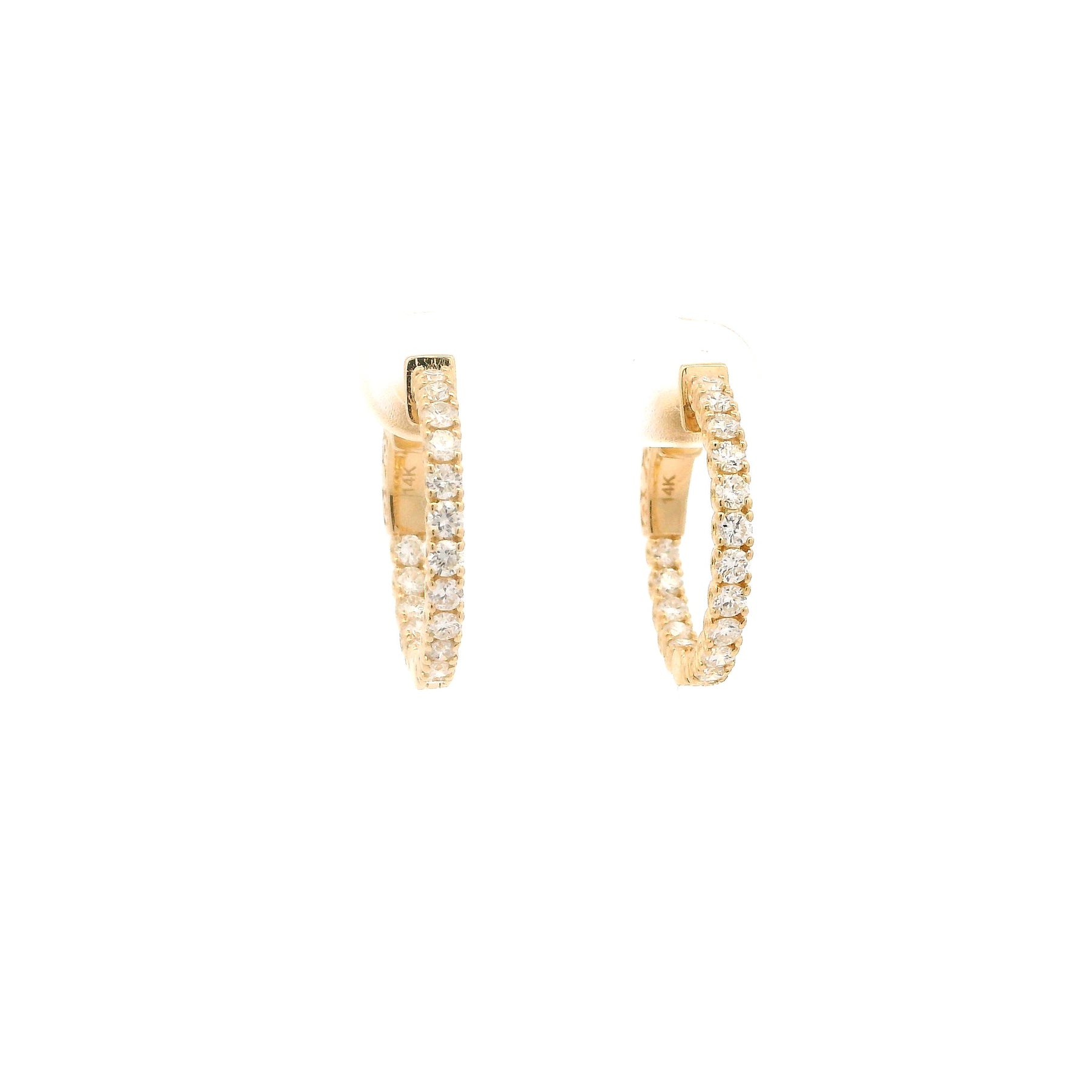 The perfect addition to any jewelry collection, these 1-carat diamond hoops are handcrafted in 14k yellow gold and full-cut round brilliant diamonds. Perfect for everyday wear, these earrings embody sophistication and luxury without trying too hard.