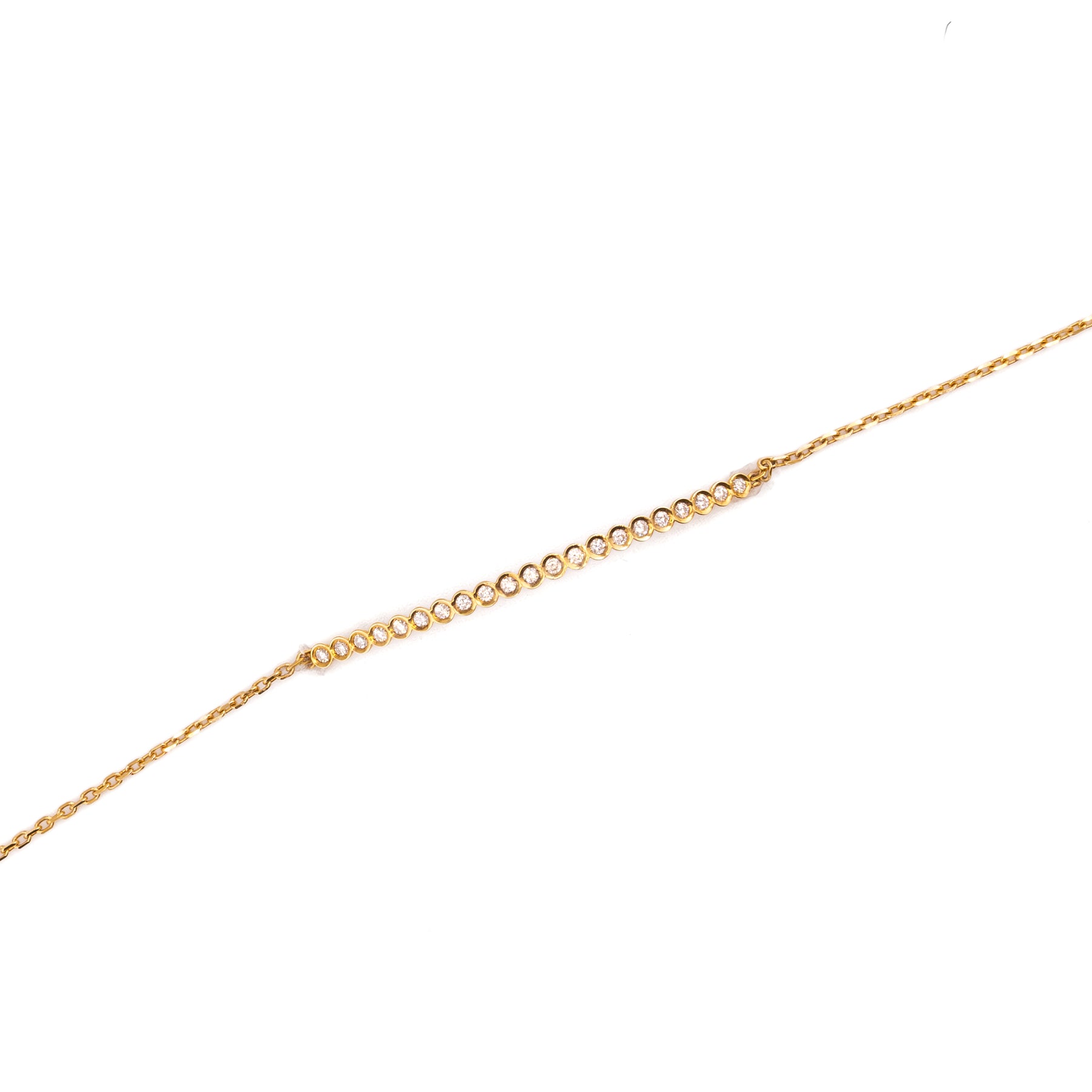 Dainty and chic, this bracelet is crafted in 18k gold and features a row of round bezel-set diamonds along the center. Offering a refined, vintage-meets-modern aesthetic, the Celeste bracelet is perfect for everyday elegance and layering with other pieces.