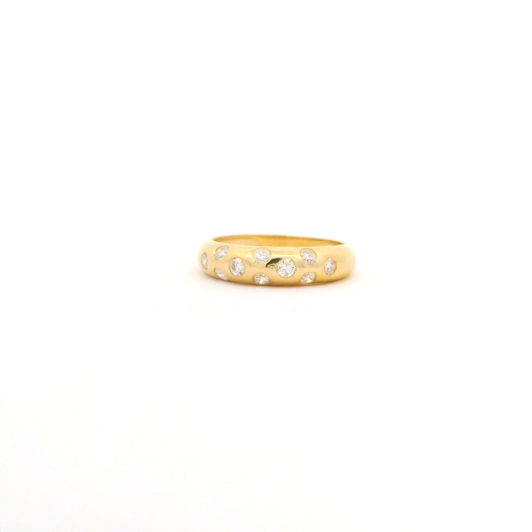 This pillowy ring brings the shine and dimension of a modern gold statement ring, but the scattered stones keep it feeling light, effortless, and full of personality. It’s the kind of piece you throw on when you want a little drama without going over the top, and it stacks beautifully with slimmer bands for contrast. Whether you wear it solo or mix it into your everyday rotation, it brings that soft-sculpted look with just enough sparkle to feel special.