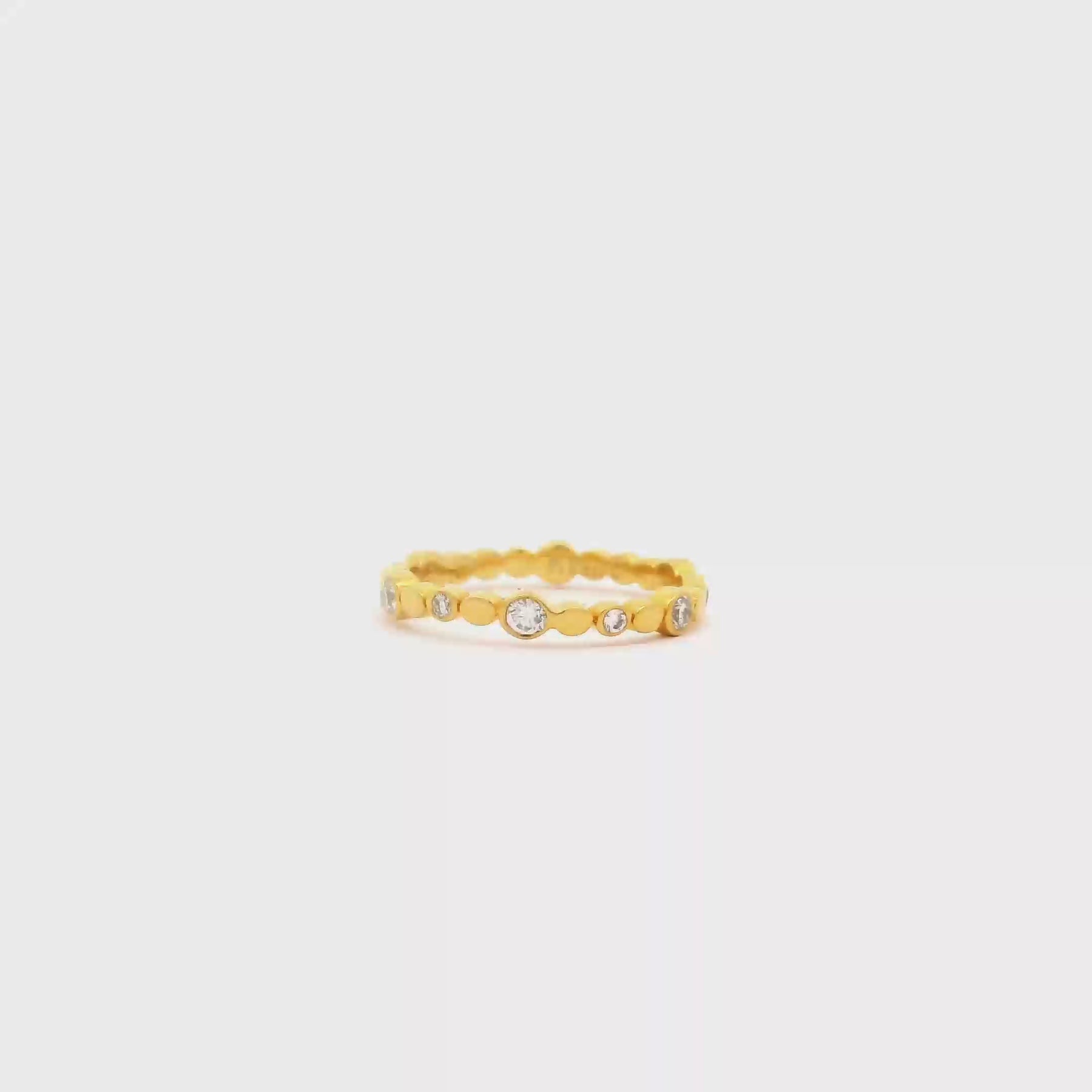 This 14k gold and diamond ring plays with contrast, alternating polished gold circles and sparkling diamonds for a look that feels both refined and fun. The rhythm of gold and diamond creates movement and texture, giving the piece a modern edge while still feeling timeless. Slim and comfortable, it layers beautifully with your everyday favorites, yet has enough personality to stand confidently on its own.