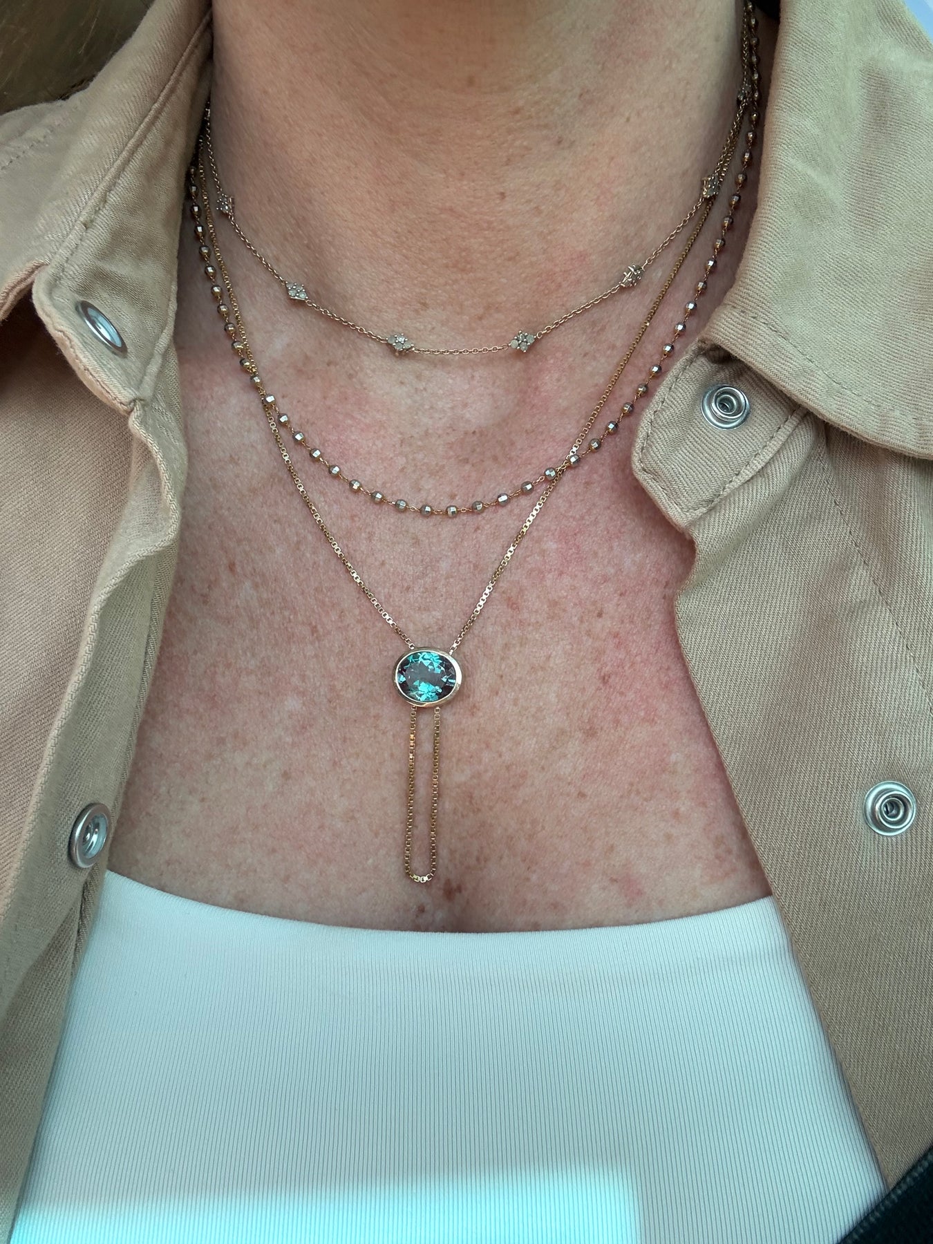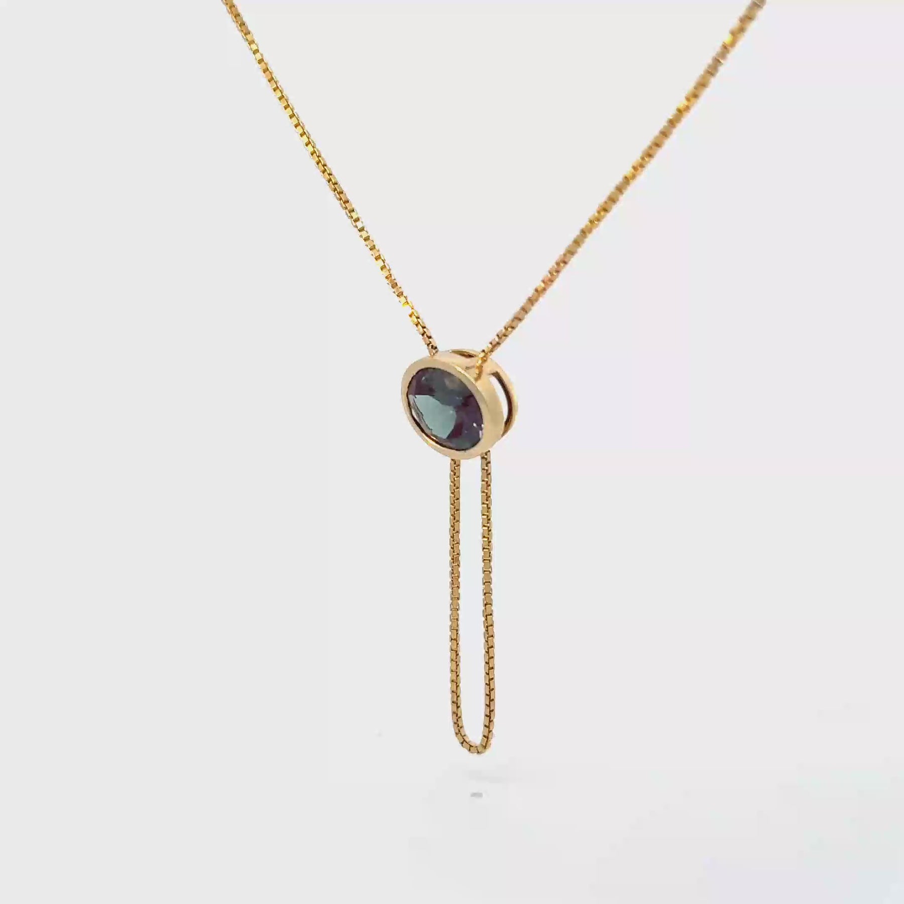From the Solara Collection, this necklace features a beautiful Alexandrite. The stone, passed down from a previous generation, is bezel-set to showcase its natural brilliance. Suspended on a refined box chain, the design features The Solara Collection's signature loop detail—adding a playful twist to its classic elegance. Whether worn alone or layered, the stone honors the past and the design makes a modern style statement.